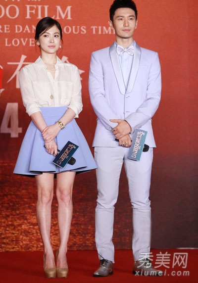 白色薄纱衬衣搭配浅紫色高腰短裙,这身造型广受好评,干净甜美的颜色让人倍感舒爽,显得她的气质很纯净,简单的款式大方耐看,裸色高跟鞋是一直陪伴她的战靴,显腿长的作用很惊人。