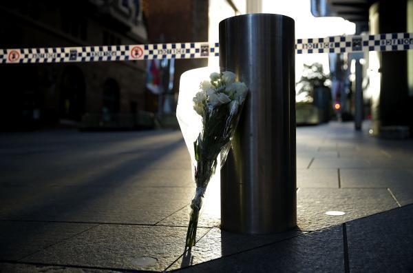 2014年12月16日,澳大利亚悉尼,民众在人质劫持事件发生地点放置献花悼念丧生的两名人质