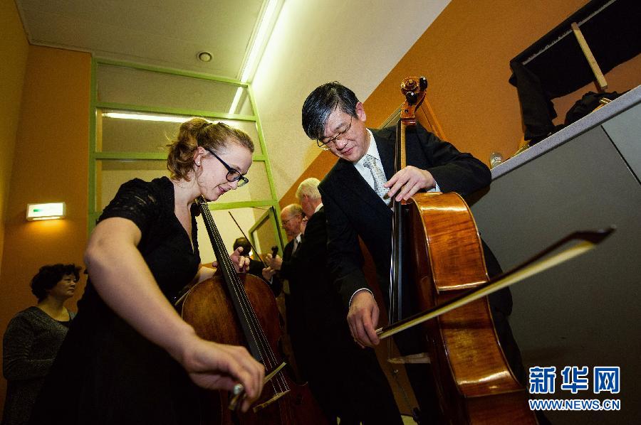12月17日,在奥地利维也纳,宋翰和负责大提琴演奏的乐队成员对音。宋翰夫妻在2011年加入了一支隶属于维也纳音乐厅的当地乐队。维也纳是世界闻名的音乐之都,来自世界各地的音乐家带着他们心爱的乐器汇聚于此,为观众奉献出一场场精彩的表演。在每场精彩的音乐会背后,都离不开制琴师的鼎力支持,他们让每把乐器绽放出应有的光彩。维也纳华人提琴制作大师宋翰就是他们中的一员,他和妻子尚志红进入当地制琴行业已近30年。宋翰从小接受良好的音乐教育,1979年考入上海音乐学院管弦系大提琴演奏专业和提琴制作专业,后选择以提琴制作为主科,师从中国提琴制作事业的开创者谭抒真先生。1985年,宋翰开始了他在奥地利音乐界的打拼。1994年,经过长达一个月的严格考试后,宋翰在维也纳获得奥地利提琴制作大师的称号,并于次年与同为上音提琴制作专业的妻子尚志红共同创办了自己的提琴工作室。近30年来,夫妻俩的以诚待人和专业素养在业内积攒了口口相传的好口碑,在竞争激烈的音乐之都站稳脚跟,世界各地的音乐家慕名而来。新华社记者钱一摄