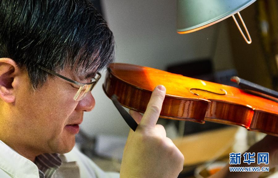 12月17日,在奥地利维也纳,宋翰在自己的工作室里修复一把小提琴。维也纳是世界闻名的音乐之都,来自世界各地的音乐家带着他们心爱的乐器汇聚于此,为观众奉献出一场场精彩的表演。在每场精彩的音乐会背后,都离不开制琴师的鼎力支持,他们让每把乐器绽放出应有的光彩。维也纳华人提琴制作大师宋翰就是他们中的一员,他和妻子尚志红进入当地制琴行业已近30年。宋翰从小接受良好的音乐教育,1979年考入上海音乐学院管弦系大提琴演奏专业和提琴制作专业,后选择以提琴制作为主科,师从中国提琴制作事业的开创者谭抒真先生。1985年,宋翰开始了他在奥地利音乐界的打拼。1994年,经过长达一个月的严格考试后,宋翰在维也纳获得奥地利提琴制作大师的称号,并于次年与同为上音提琴制作专业的妻子尚志红共同创办了自己的提琴工作室。近30年来,夫妻俩的以诚待人和专业素养在业内积攒了口口相传的好口碑,在竞争激烈的音乐之都站稳脚跟,世界各地的音乐家慕名而来。新华社记者钱一摄
