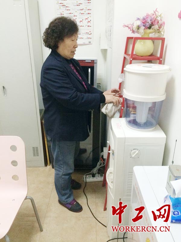 歌华大厦商务楼宇联合会主席张玉惠每天上班后都会打扫妈咪屋,她说“新妈妈”们需要一个干净、舒适、安全的休息和哺乳空间。