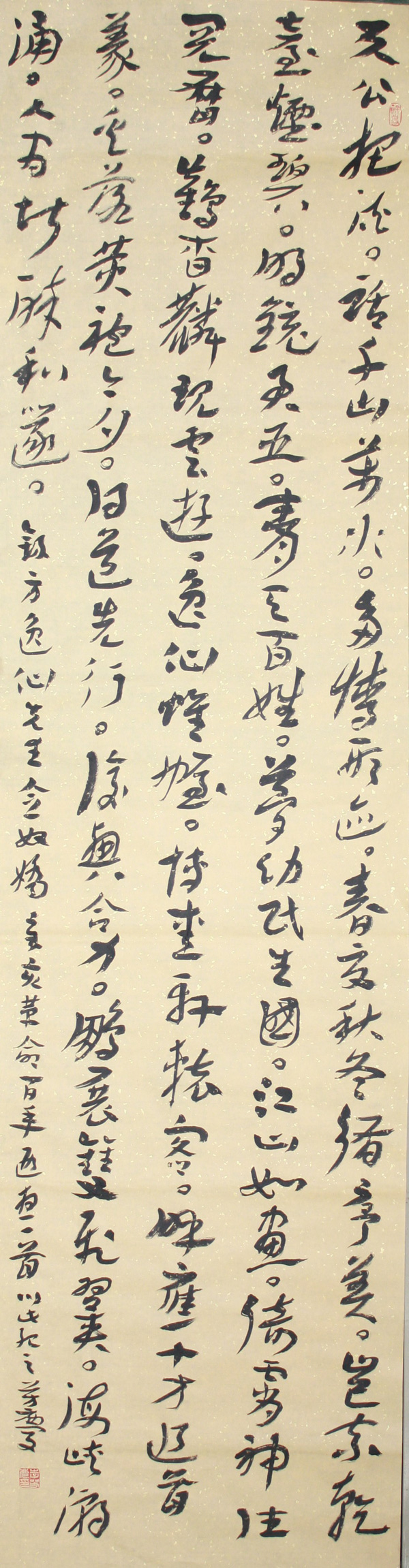 书山有路勤为径,练书法的人更是如此。爱好加上勤奋,李芳庆在书法当中成就自己的事业。退休之后,不管是当上县级小市的书协主席,经常代表单位经常参加一些书法画展比赛得奖,还是获中国书协主办的第二届全国老年书法作品展最高奖优秀奖,他都心存感激敬畏,心平气和认真地去做事做人,在书法界获得的无数荣耀光环下,保持着一颗常人平静的心情,不为名利所羁绊诱惑,在属于自己的小圈子里规矩写字做人做事,而且尽自己最大的能力帮助他人。用自己喜爱简单快乐的生活畅游在浩瀚的书香墨汁之中,多次为灾区和希望工程捐赠作品,到施工一线为工人们在工地当场写字作画捐作品,在单位后方基地义务精心培养筑路工后人,上街为街坊四邻免费赠送写春联,一幅幅作品不仅承载着这位齐鲁汉子孔孟之乡厚重博大的文化精神,更体现出作为当今书法人李芳庆崇高的人品和素养。