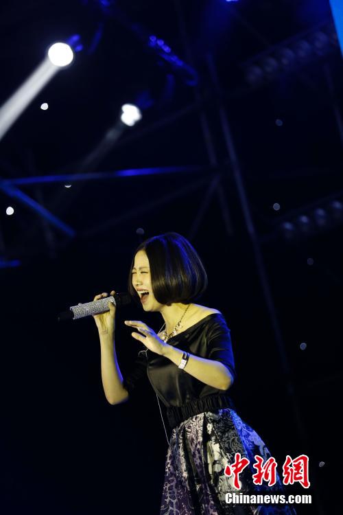 图为姚贝娜资料图,2014年5月9日,2013届中国OOH青年广告创意大赛颁奖盛典在京举行,歌手姚贝娜献唱。 中新社发 杨阳 摄