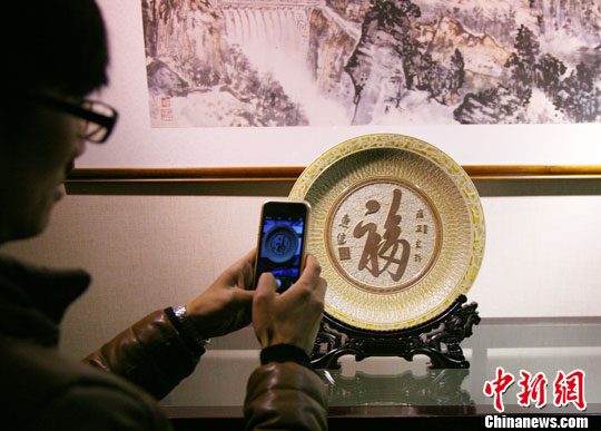 1月15日,《翰墨丹青》爱心觉罗焘健、赵伟、王松林书画青瓷联展在杭州唐云艺术馆举行。中新社发 李晨韵 摄