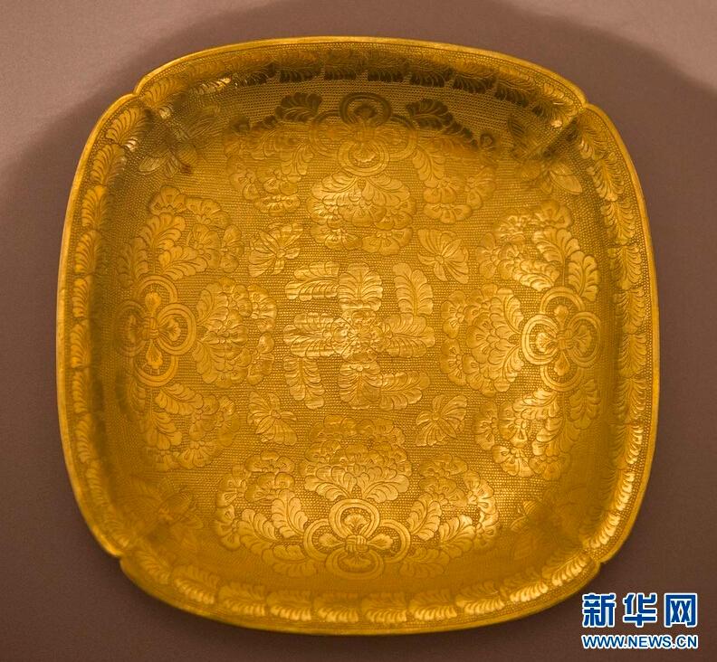 从“黑石号”沉船上打捞起的“卍”字符金碟。邹峥摄图片来源:新华网