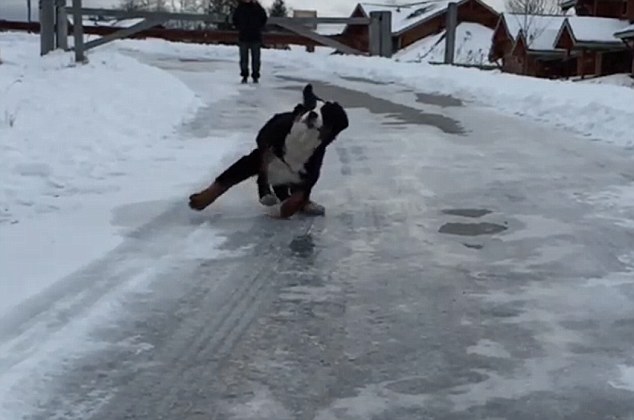 主人帕克用慢镜头记录下了奎因在冰上的每个滑稽瞬间。
