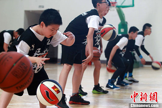 2月1日,由北京飞人体育文化有限公司举办的2015年北京飞人体育青少年篮球冬令营和首届北京飞人体育青少年篮球减肥冬令营正式启动。中新社发 杨景亮 摄
