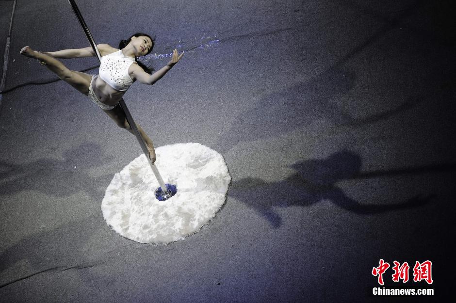 2月2日,中国钢管舞国家队资格赛在天津举行,17名国家队队员中的7名选手参加了资格赛的选拔,争夺2015年钢管舞世锦赛代表中国参赛的4个名额。2011年以来,钢管舞国家队出战三次国际赛事,为中国钢管舞在世界上的发展留下了脚印。2014年初,中国代表队在国际上的钢管舞成绩显著提升,女单、男单和双人分别获得大奖。2015年钢管舞世锦赛落户中国。中新社发 佟郁 摄