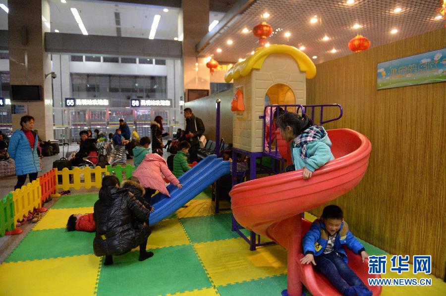 2月3日,孩子们在昆明火车站儿童乐园玩耍。