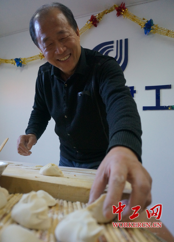 按照赛制要求,参加比赛的8个队员,4人一组,在限定时间内,饺子数量最多,外观最好的一组获胜。哨声响起,参赛选手们热情高涨,撸起袖子,各个“亮”起自己的厨艺,和面、切面、擀皮、包饺子……密切配合,井然有序。(中工网记者杨灵 摄)