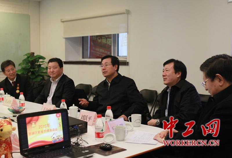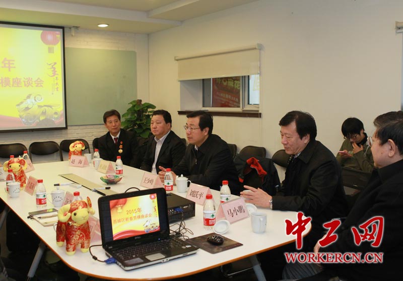 新春将至,北京市西城区在新华1949文化创意产业园区举办2015年新春劳模专场慰问演出,北京市西城区领导王少峰、刘跃平、杜灵欣、王力军、章冬梅、王旭与六位一线劳动模范赵海、徐翠莲、李薇莉、孙广宇、李金明、刘军座谈,共话发展大计。会后,北京市西城区领导还与来自西城区各条战线上的百余名全国、市、区级劳动模范共聚一堂,观看了包括戏剧、相声、杂技在内的精彩节目。