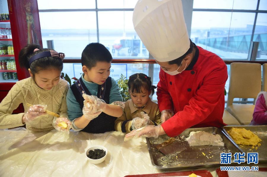 3月5日,小旅客们在候机大厅参与包汤圆的活动。当日,东方航空公司江西分公司和江西省机场集团公司在南昌昌北机场共同策划了“欢喜闹元宵”的快闪活动。来自空乘、飞行员、地勤、后勤等多个工种的工作人员拿起乐器,跳起舞蹈,还在候机室里带着孩子们包汤圆,欢乐的气氛令很多路过的旅客惊喜不已。新华社记者 周密 摄