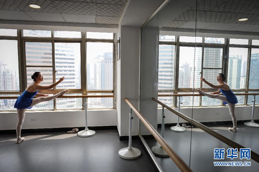 在贵阳,有一个“高龄芭蕾舞团”,50余名成员平均年龄超过40岁,年纪最大的已经60岁。她们中没有专业的舞者,而是一群来自医生、警察、老师等不同行业的“老女孩”,为了少女时代的梦想,她们穿上芭蕾舞裙、连袜裤及芭蕾舞鞋,登上芭蕾舞的舞台。新华社记者 欧东衢 摄