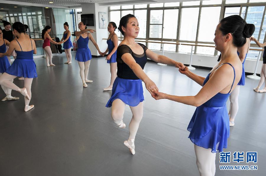 在贵阳,有一个“高龄芭蕾舞团”,50余名成员平均年龄超过40岁,年纪最大的已经60岁。她们中没有专业的舞者,而是一群来自医生、警察、老师等不同行业的“老女孩”,为了少女时代的梦想,她们穿上芭蕾舞裙、连袜裤及芭蕾舞鞋,登上芭蕾舞的舞台。新华社记者 欧东衢 摄