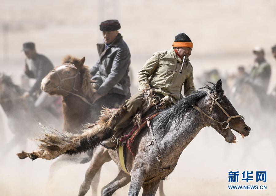 3月18日,新疆塔什库尔干塔吉克自治县提孜那甫乡的塔吉克族骑手参加叼羊大赛。当日,塔吉克族群众自发组织的叼羊大赛在新疆塔什库尔干塔吉克自治县上演。骑手们纵马奔驰在海拔4000多米的帕米尔高原上,用叼羊大赛比拼骑术,迎接春天。新华社记者 江文耀 摄