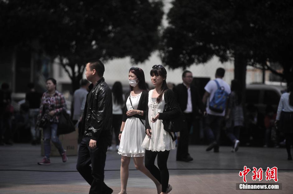 3月25日,重庆观音桥步行街上市民身着裙子出行。天气预报显示,当日重庆主城最高气温已达到25℃。中新社发 陈超 摄