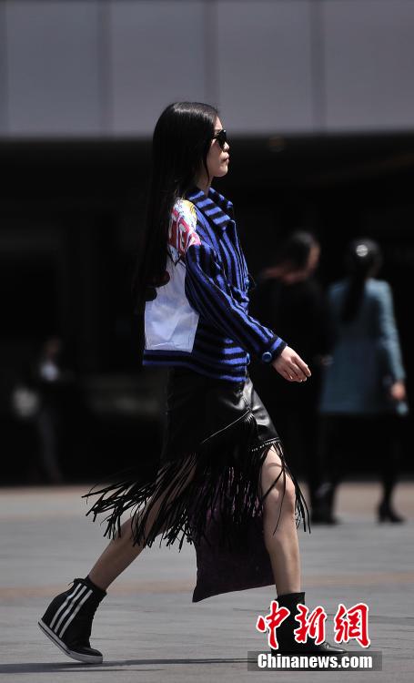 3月25日,重庆观音桥步行街上一美女身着夏装裙子出行。天气预报显示,当日重庆主城最高气温已达到25℃。中新社发 陈超 摄