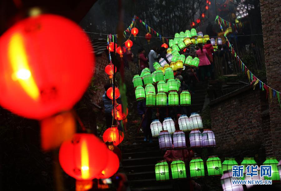3月26日,湖南衡阳县界牌镇居民手执彩灯游街庆祝火灯节。当日,湖南省衡阳县界牌镇举行盛大的传统民俗活动火灯节,居民们点亮火把、红烛,彩灯等,走街串巷,祈求风调雨顺。 新华社发(曹正平 摄)