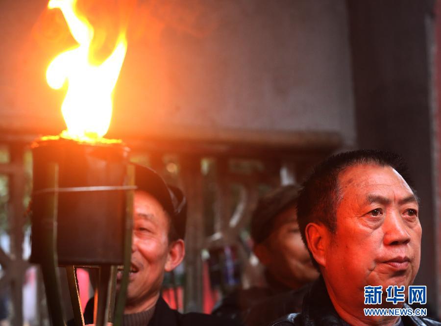 3月26日,湖南衡阳县界牌镇居民点燃火把庆祝火灯节。当日,湖南省衡阳县界牌镇举行盛大的传统民俗活动火灯节,居民们点亮火把、红烛,彩灯等,走街串巷,祈求风调雨顺。 新华社发(曹正平 摄)