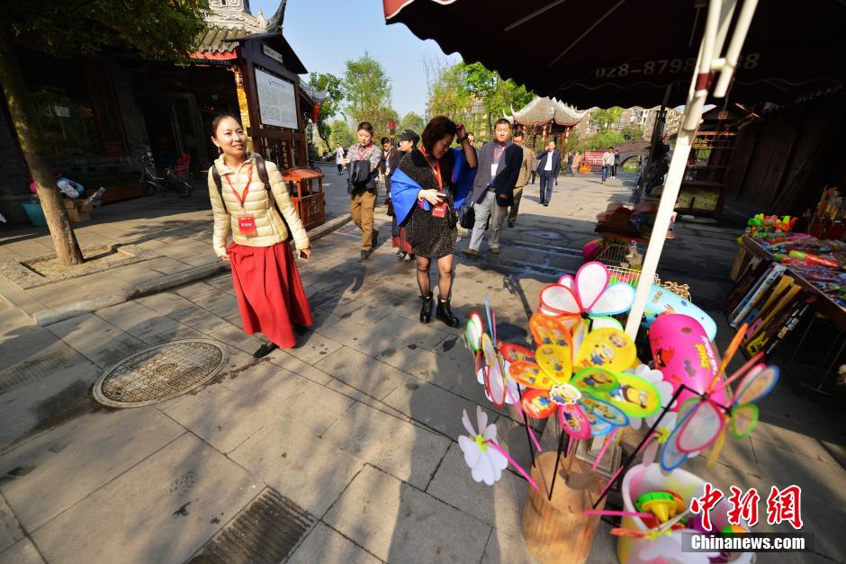 3月29日,由中国新闻社、四川省人民政府新闻办公室、四川省外事侨务办公室联合组织的“行走中国·2015海外华文媒体美丽四川行”联合采访活动正式拉开序幕。16个国家的20位海外华文媒体负责人及编辑、记者在成都感受当地浓郁的田园风情“慢”生活。中新社发 高寒 摄
