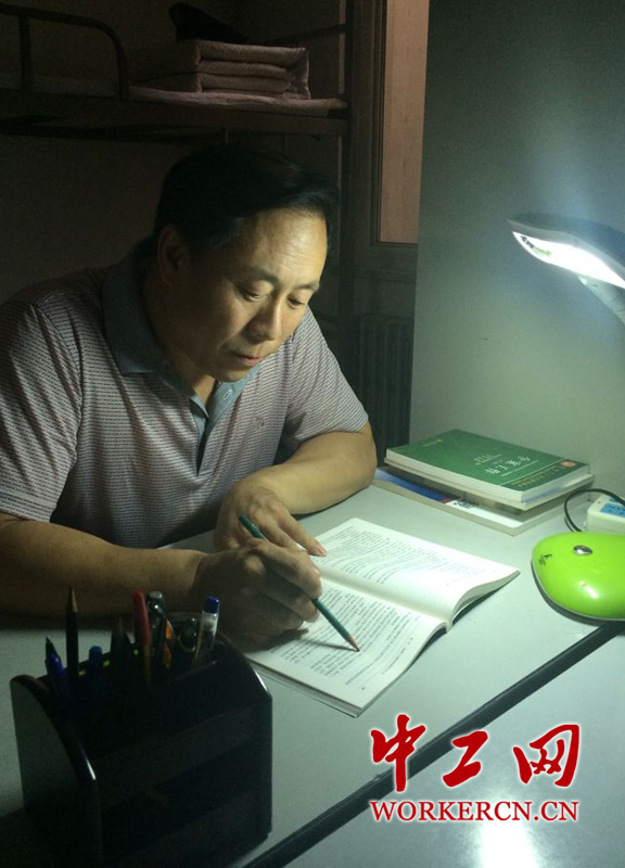 受到王桂明刻苦学习的影响,北大保安队的队员也开始努力提高自己的学历。(中工网记者杨灵 摄)