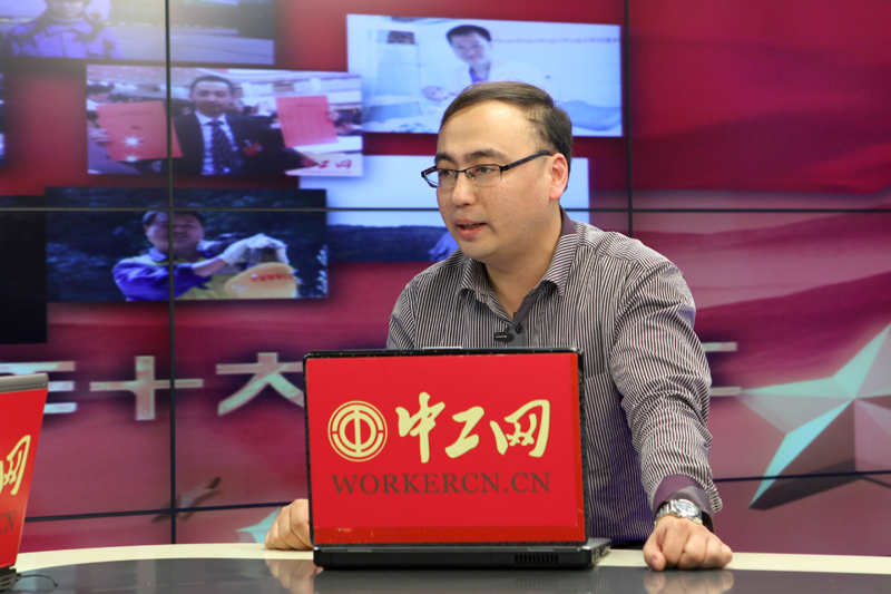 中航工业哈尔滨飞机工业集团有限责任公司数控铣工秦世俊做客中工网。 中工网记者 李雪峰 摄