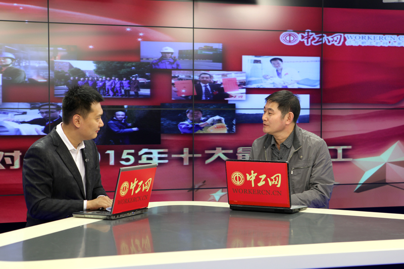 河北钢铁集团唐钢公司热轧部炼钢操作技能专家郑久强做客中工网。 中工网记者 李雪峰 摄
