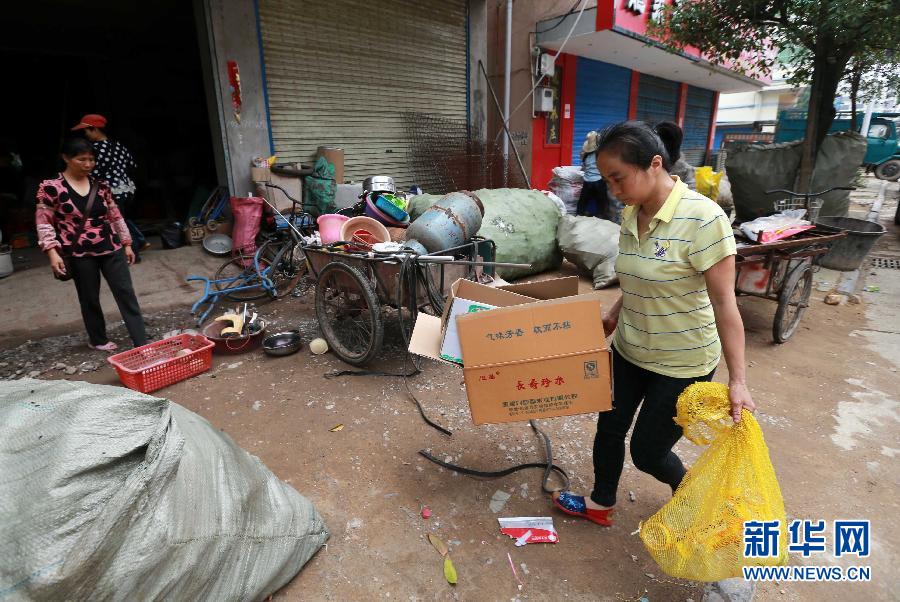 5月9日,在广西桂林市永福县一家废旧品收购站,白革芬将捡到的废旧品拿来卖。今年47岁的白革芬是广西桂林市永福县人,20年前,她在经历了儿子夭折婚姻破裂的不幸后,捡养了当时刚满月的女儿。从此,白革芬与母亲、女儿三人相依为命。2012年,白革芬在街头摆的临时水果摊无法继续维持,家中母亲年事已高,女儿马上要上大学,她于是把心一横,决定捡破烂供女儿读书。如今,白革芬的女儿已经开始了大学一年级的生活,为了让女儿能继续学业,这位母亲依然这样坚持着。新华社发(刘教清 摄)