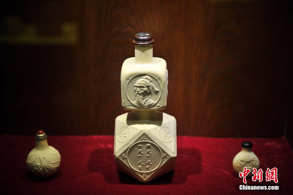 5月13日,游客在观看琳琅满目的葫芦。近日,天津首家葫芦博物馆“葫芦庐艺术馆”落成并免费对市民开放。据悉,约500平方米的葫芦博物馆,由天津非物质文化遗产“葫芦庐”第四代传人赵伟创办,馆内展示了18000多个形式各异的烙画、雕刻、范制、葫芦酒等工艺的葫芦制品,尽展中国葫芦艺术的魅力。中新社发 佟郁 摄