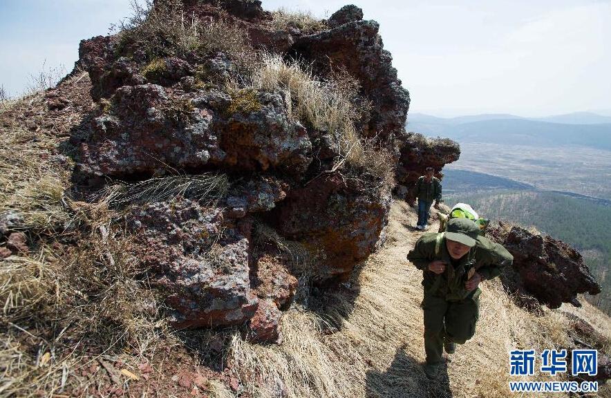 5月23日,防火瞭望员王金龙背着一袋大米上山。从摩托车停车点到山顶步行需半个小时。新华社记者 李任滋 摄 图片来源:新华网