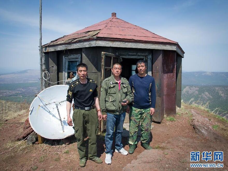 5月23日,防火瞭望员王金龙(左)、李井泉(中)、朱凤明在瞭望站前合影。新华社记者 李任滋 摄 图片来源:新华网