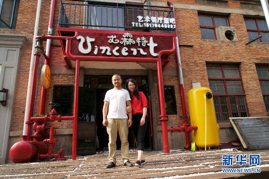 5月9日,沈稀铼与未婚妻在酒吧门前合影。