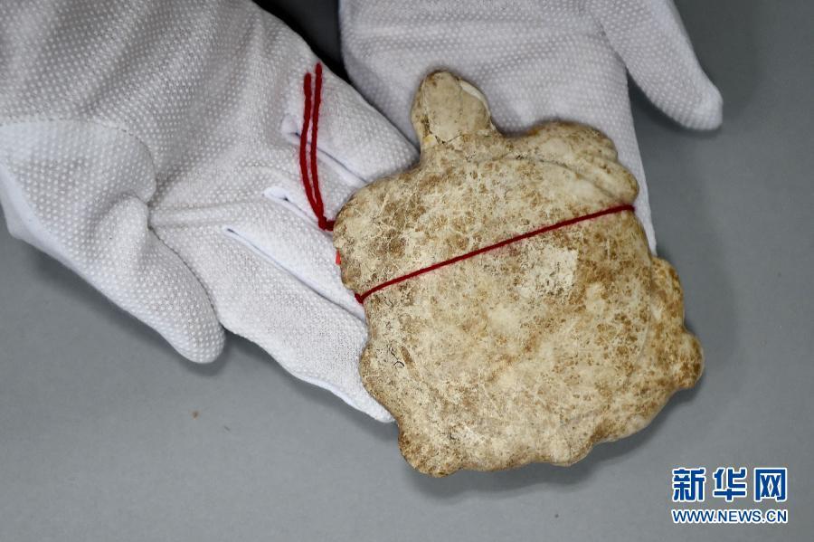 4月10日,工作人员向记者展示追回的文物——红山文化玉龟。新华社记者 潘昱龙 摄 图片来源:新华网