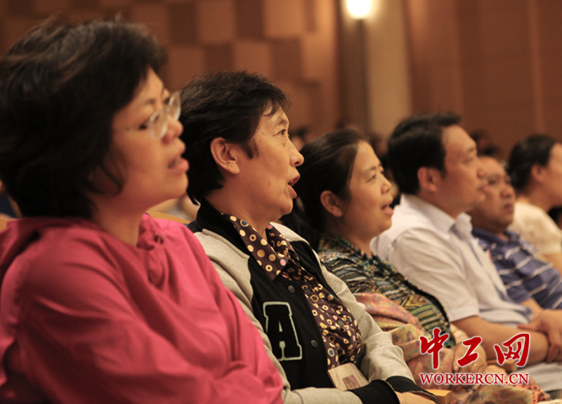 本次演出反响十分积极,图为在返场表演中,观众与表演者齐声合唱《万泉河水》。(中工网记者杨灵 摄)