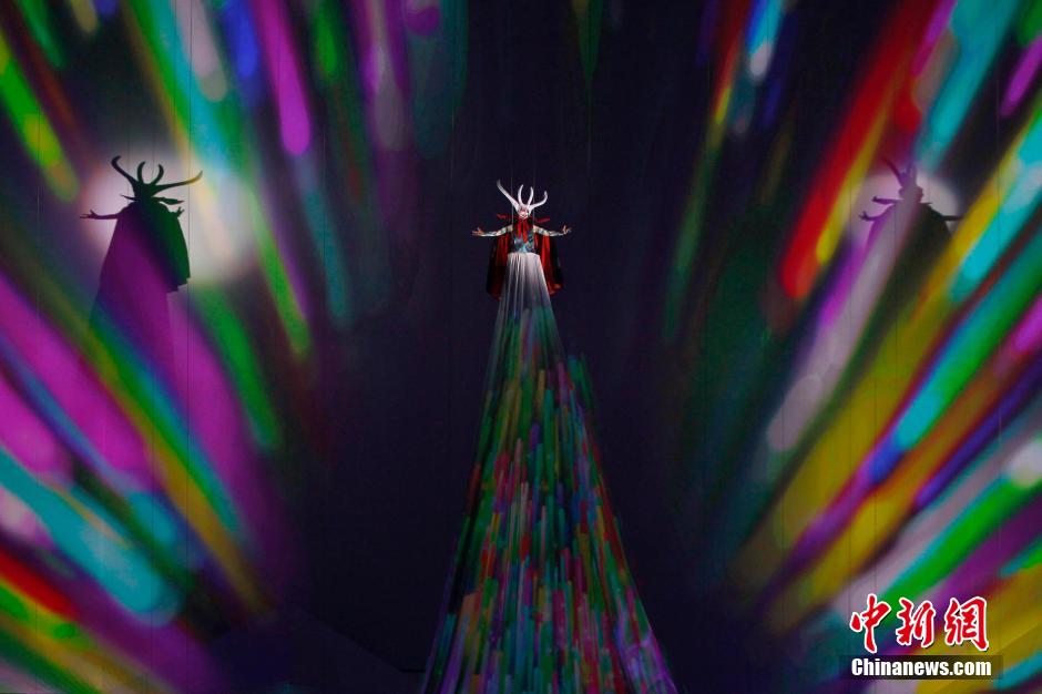5月29日晚,《鸟巢吸引》(水立方版)演员在进行最后的带妆彩排。已经走过三年的视听盛宴《鸟巢吸引》将于5月30日正式拉开第四个演出季的序幕,今年《鸟巢吸引》移师水立方,首次将北京奥运会的两大代表建筑紧密联系起来。在之前演出的基础上,本年度演出将在剧情呈现、舞美视觉、音乐声效、演员表演等方面都根据水立方的特点精心打磨,将让观众体会到和前三季演出一样精彩的视听体验。本年演出季将持续至8月份,演出场次将达到40余场。中新社发 富田 摄