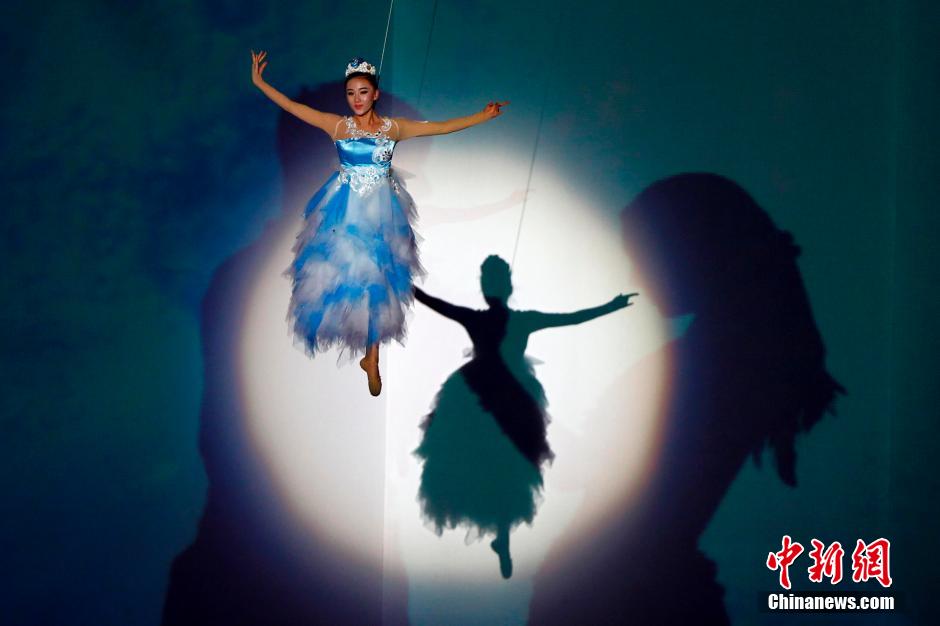 5月29日晚,《鸟巢吸引》(水立方版)演员在进行最后的带妆彩排。已经走过三年的视听盛宴《鸟巢吸引》将于5月30日正式拉开第四个演出季的序幕,今年《鸟巢吸引》移师水立方,首次将北京奥运会的两大代表建筑紧密联系起来。在之前演出的基础上,本年度演出将在剧情呈现、舞美视觉、音乐声效、演员表演等方面都根据水立方的特点精心打磨,将让观众体会到和前三季演出一样精彩的视听体验。本年演出季将持续至8月份,演出场次将达到40余场。中新社发 富田 摄