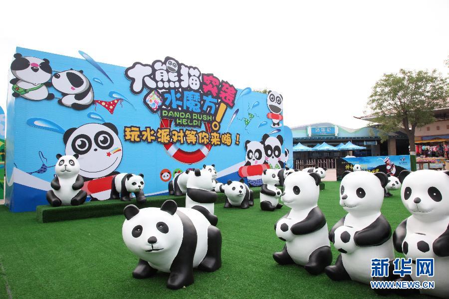5月30日,北京欢乐水魔方水上乐园五周年庆——首届熊猫艺术展“熊猫滚滚,空降水魔方”活动在水魔方正式举行。新华社发(梁凯 摄)