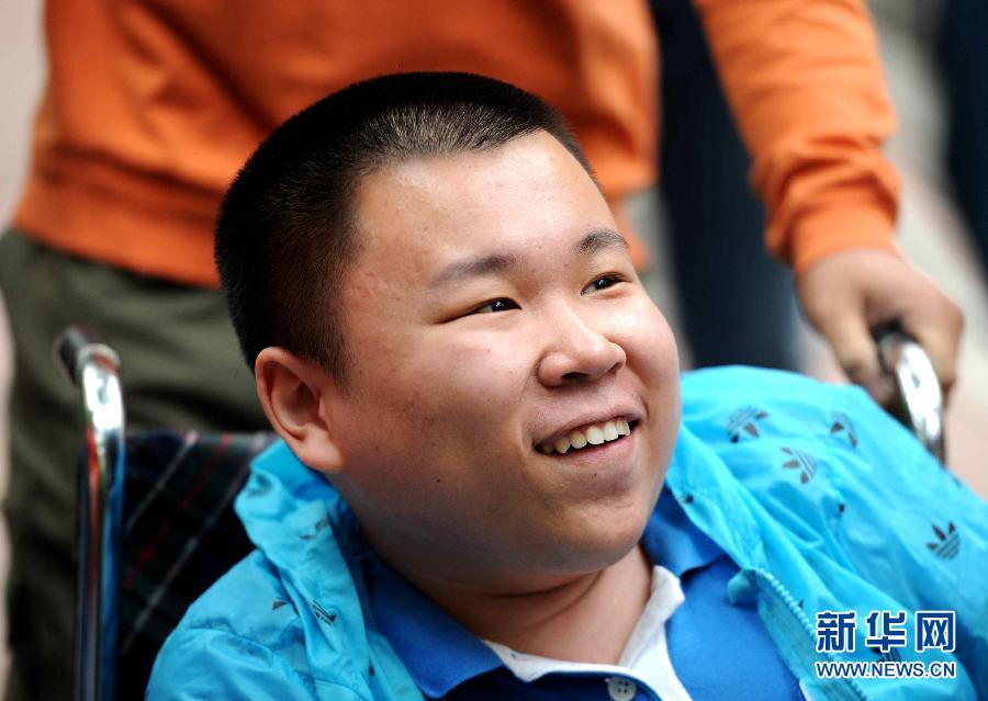 6月7日,郭丰锐考完第一个科目后露出笑容。新华社记者 王松摄