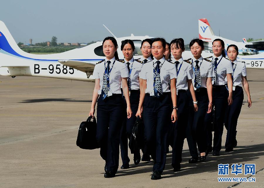 6月5日,女飞行大学生在中国民航飞行学院洛阳分院整装列队走进机场停机坪,准备参加飞行训练。日前,在中国民航飞行学院洛阳分院,来自山东、江苏、湖北、四川等地的9名女飞行大学生,正在参加205个飞行训练小时的实践课程。飞行职业要求作风严谨,训练和日常生活管理都是“准军事化”,对这些女孩子来说,学习飞行是一次人生的磨练,有许多挑战,也有许多惊喜。据了解,2007年,中国民航第一批通过高考招收的女飞行员就是在中国民航飞行学院洛阳分院毕业的。此后每年都有一定数量的女飞行学生从这里走向工作岗位,实现了她们的蓝天梦想。新华社记者王颂摄