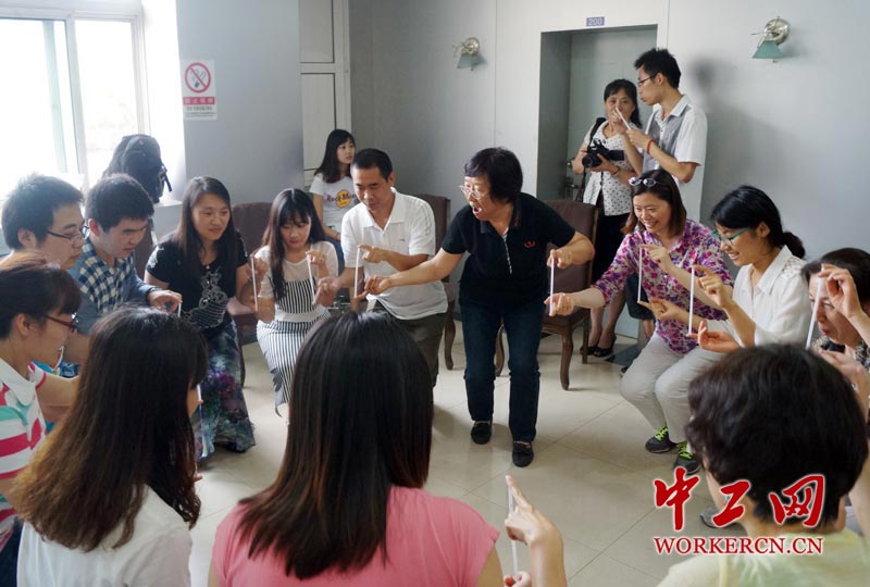 6月10日,从北京市西城区利玛孵化基地楼宇间传来一阵阵快乐的笑声。这是北京市西城区德胜街道总工会为职工们购买的社会服务机构“开心工作坊”。“开心工作坊”又名“午间工作坊”。是利用企业员工中午饭后的休息时间,通过做游戏的方式,为职工们搭建起沟通、交流的平台,消除陌生尴尬,拉近职工距离。