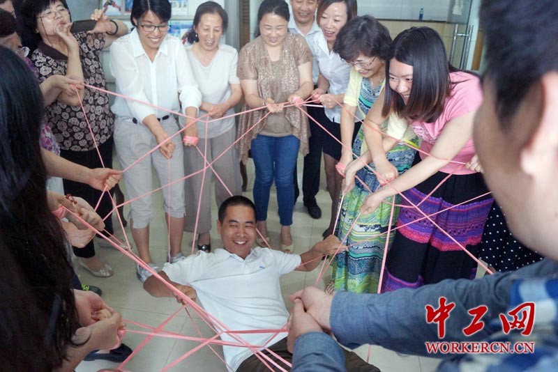 6月10日,从北京市西城区利玛孵化基地楼宇间传来一阵阵快乐的笑声。这是北京市西城区德胜街道总工会为职工们购买的社会服务机构“开心工作坊”。“开心工作坊”又名“午间工作坊”。是利用企业员工中午饭后的休息时间,通过做游戏的方式,为职工们搭建起沟通、交流的平台,消除陌生尴尬,拉近职工距离。