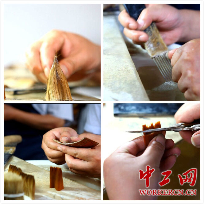 毛笔制作要精细,绝不能偷工减料,光是能叫得出名字的制笔工序就有70多种。一支好笔的产生,二、三百道工序都是不能少的。 中工网记者 段瑜摄