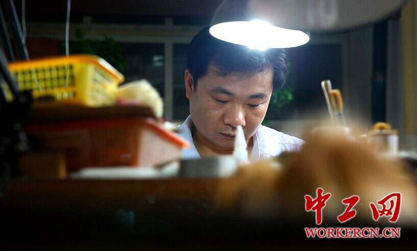 一天的时间里除了吃饭,其他的时间他都是和各种动物毛“打交道”。    中工网记者 段瑜摄