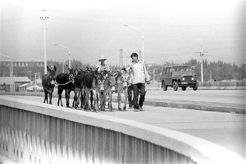 1980年7月,京郊农民赶着毛驴走上京城的立交桥