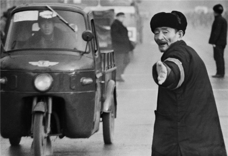 1980年12月1日天桥茶摊老人张启征,和往日一样协助交警义务疏导交通