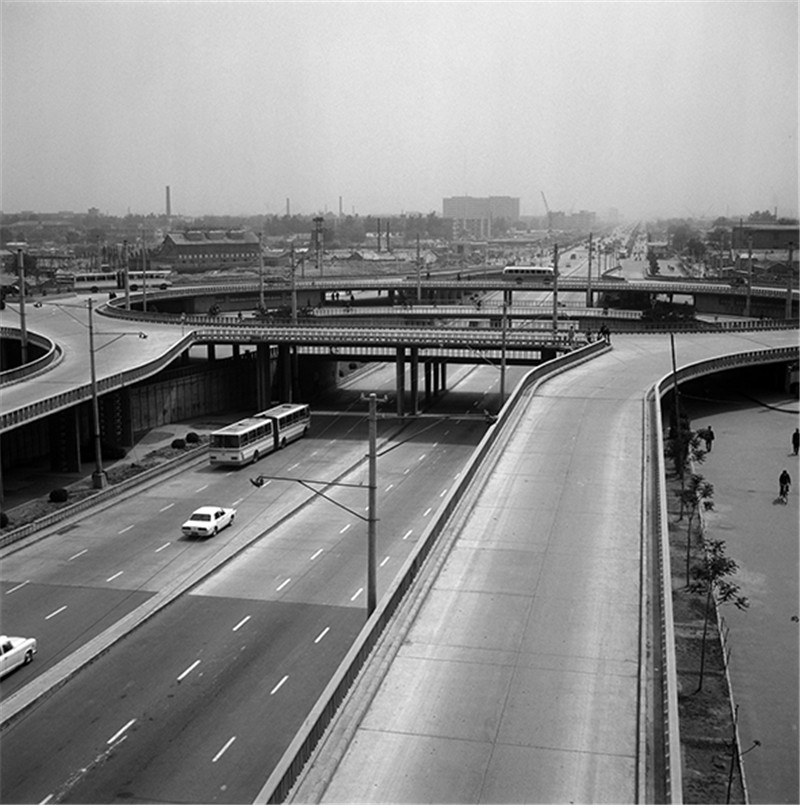 1980年12月22日,北京第一座三层立交桥西直门桥通车。为数不多的几辆车点缀在宽阔的桥面上