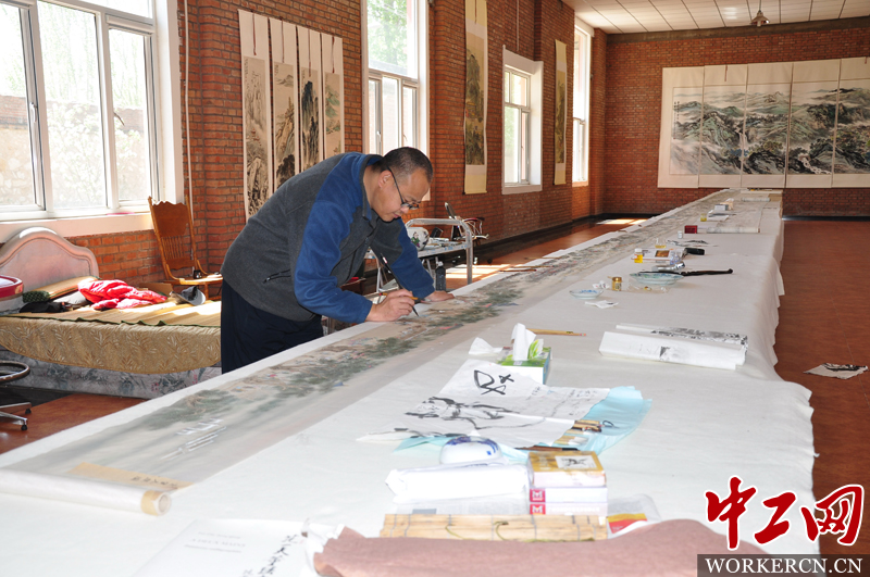 整个创作历时近一年时间,为了节约时间,吃饭经常是方便面、速冻饺子。春节过后,《京冀冬乐图》大型国画长卷创作进入冲刺阶段,他来到位于延庆的工作室全力以赴投入创作,初春的延庆比北京至少低5度,手脚冻红了,搓一搓接着画。2015年6月终于完成了《京冀冬乐图》创作。中国文联副主席、中国美术家协会主席刘大为欣然为长卷题写了名称。中国民主建国会会员、北京西山逸林画院院长宋建华为长卷题写了《跋》。