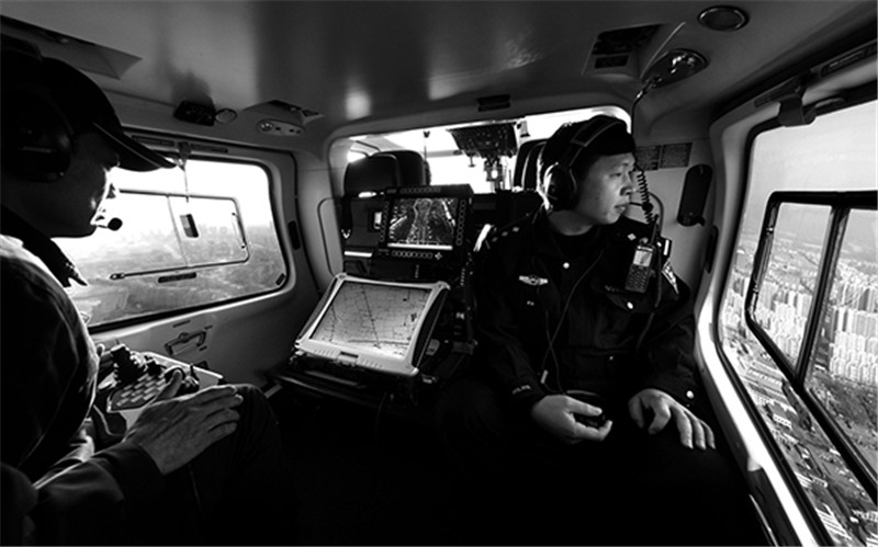 2009年3月16日早晨交通高峰时段,交通民警 乘北京市公安局警用直升飞机对四环路路面进行交通监测,将图像实时传送至交管局指挥中心的大屏幕上,协助地面进行交通疏导 。