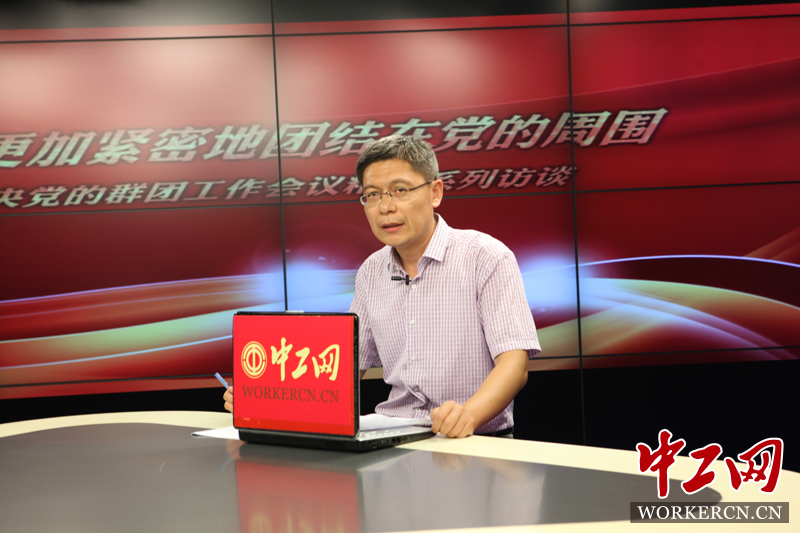 中国工运研究所副研究员王压非做客中工网。中工网记者 李雪峰摄