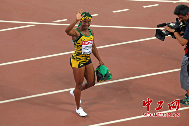 牙买加选手弗雷泽以10秒76获得女子百米冠军,个人第三次获得世锦赛女子百米冠军。